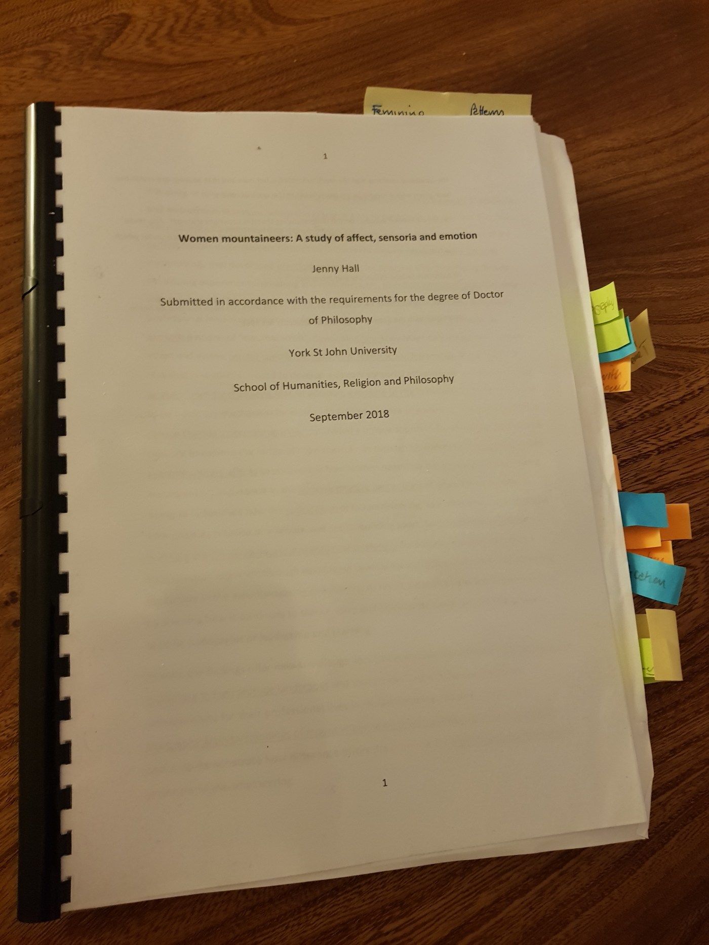 On 7 December 2018 I met with my external and internal examiners, Dr Paul Barratt, Staffordshire University and Professor Lynne Gabriel, York St John University, to defend my thesis: Women mountaineers: A study of affect, sensoria and emotion. I want to thank them for an engaging and thought-provoking interview that has given me a clear direction for the next step in academic life I want to take. So proud to call my self Dr.